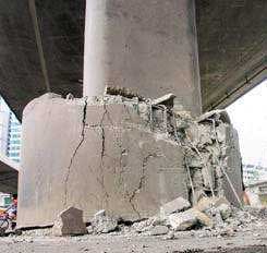 由于加大了橋柱的結(jié)構(gòu)尺寸,占用了車道,交通安全危險(xiǎn)性某種程度上提高了。