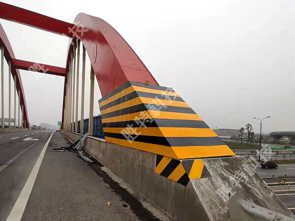 該橋交通流量較大,為防止車撞橋事故對(duì)大橋產(chǎn)生的各種影響,決定采用勝特科技公司設(shè)計(jì)研發(fā)的互通立交橋防撞設(shè)施做為保護(hù)裝置。