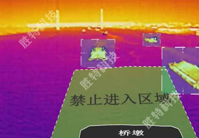 船舶超高預(yù)警:系統(tǒng)在橋梁檢測(cè)區(qū)域設(shè)置熱成像儀,根據(jù)成像區(qū)域的中心線上方是否有移動(dòng)的圖像識(shí)別船舶是否超高,系統(tǒng)如果探測(cè)到船舶超高,通過(guò)語(yǔ)音對(duì)講系統(tǒng)向船舶及時(shí)發(fā)出報(bào)警信號(hào)。