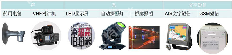 系統(tǒng)告警方式采用定向揚(yáng)聲器、爆閃燈、電子顯示屏等聲光電設(shè)備和VHF電臺(tái)、短信提示等多種手段相結(jié)合,對(duì)船舶駕駛員進(jìn)行危險(xiǎn)提示,減少事故發(fā)生的概率。